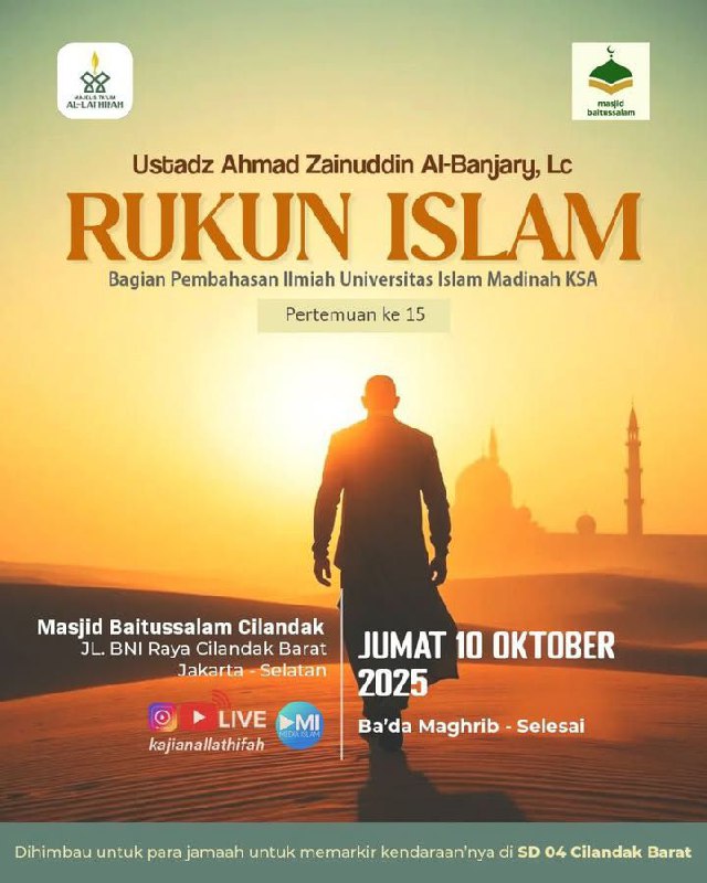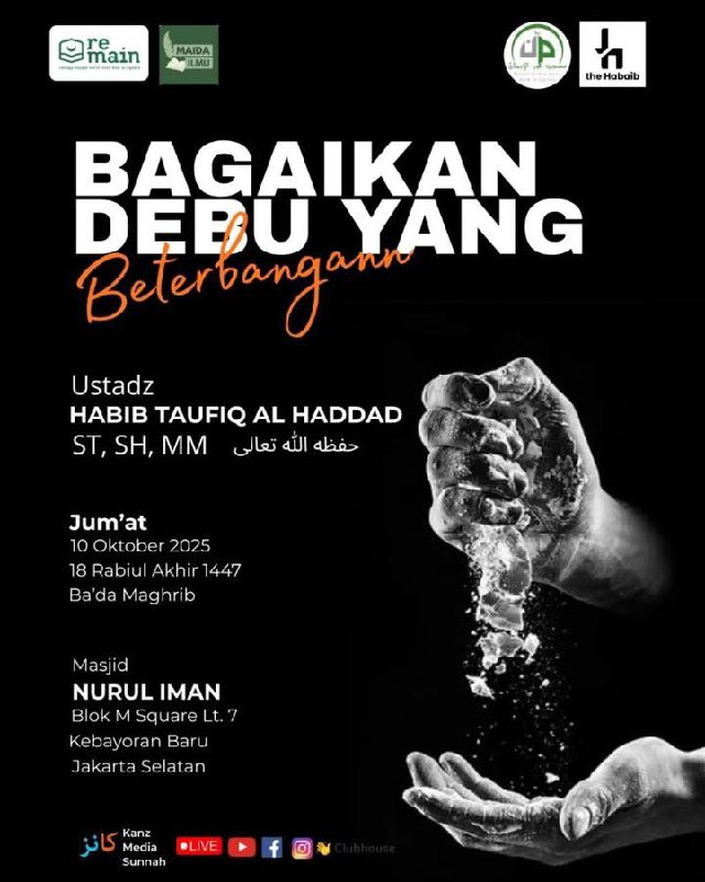๐บ: Kajian ini juga dapat disaksikan live streaming di Facebook, Youtube dan Instagram Masjid Nurul Iman Blok M Square