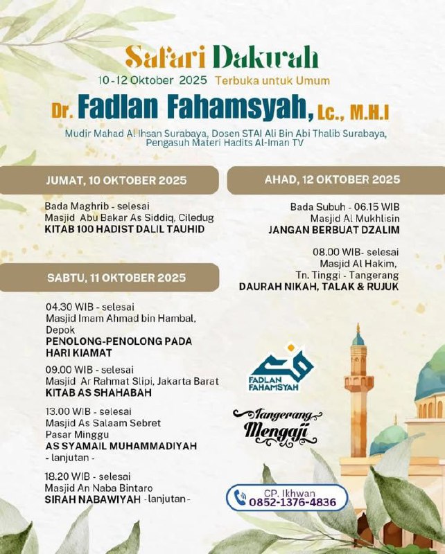 ๐๏ธ Jumโat, 18 Rabiโul Akhir 1447 H / 10 Oktober 2025