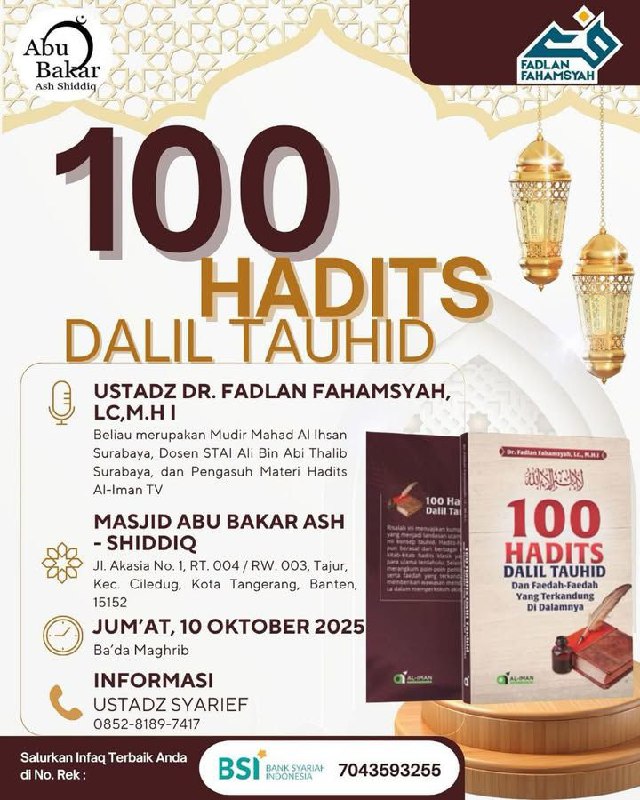 ๐บ: Kajian ini juga dapat disaksikan live streaming di Facebook, Youtube dan Instagram Masjid Nurul Iman Blok M Square