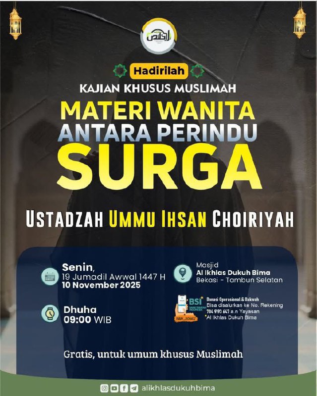 Kajian ini terbuka untuk umum, Ikhwan dan akhwat. Harap sebarkan info kajian ini, semoga menjadi ladang amal kebaikan di akhirat kelak``