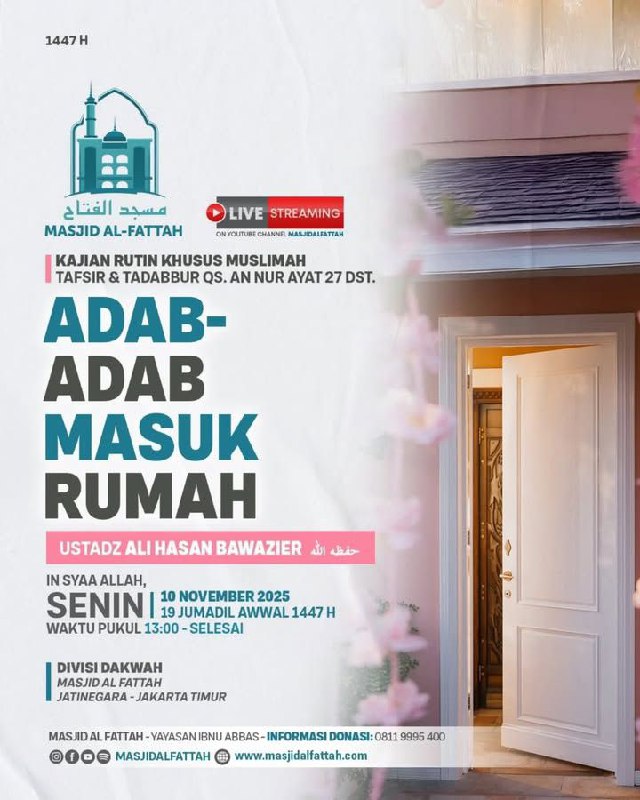 In sya ALLAH ditayangkan langsung di Channel YouTube Masjid Al-Fattah