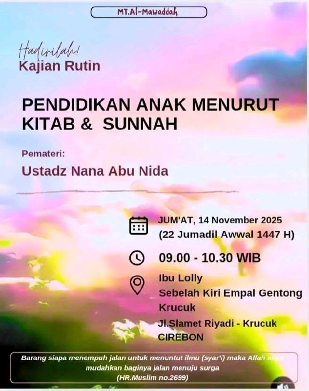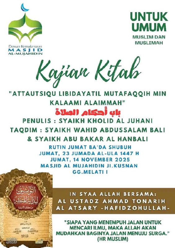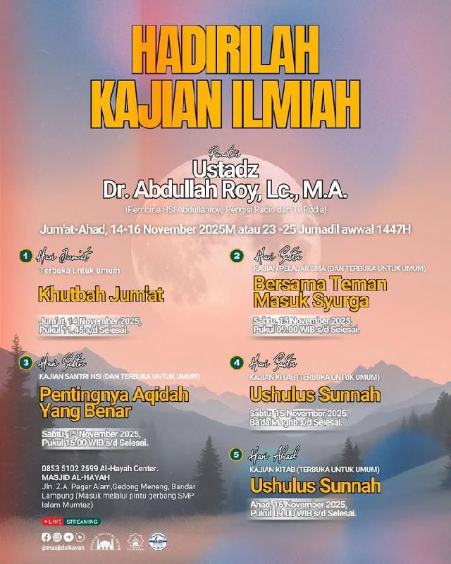 ๐ Kamis, 22 Jumadil Awwal 1447 H/13 November 2025 Ba'da Subuh WIB - Selesai