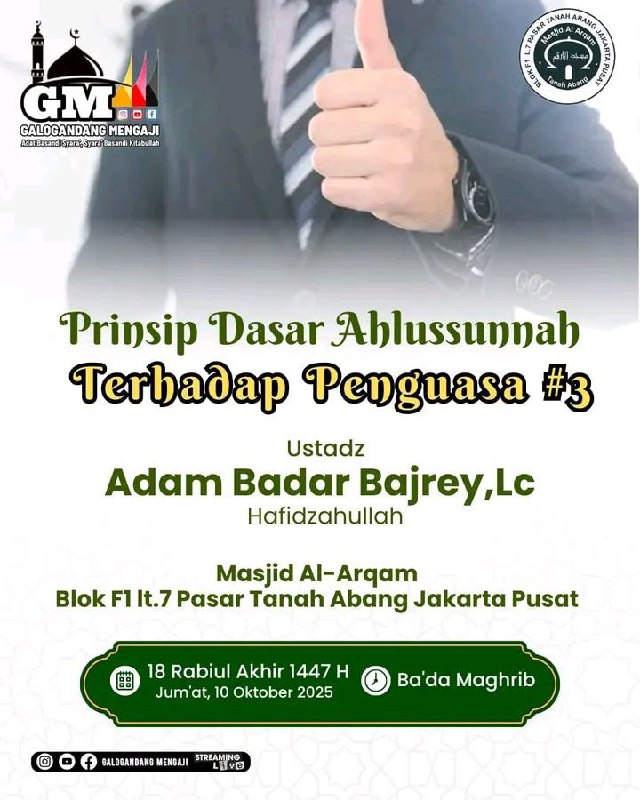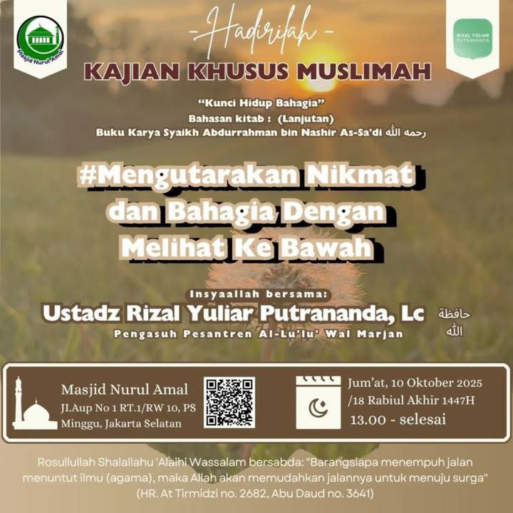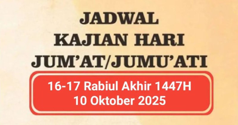📅 Insyaallah Hari Jumat, 10 Oktober 2025 / Ba'da Maghrib. 18 Rabiul Akhir 1447 H.