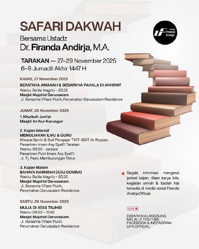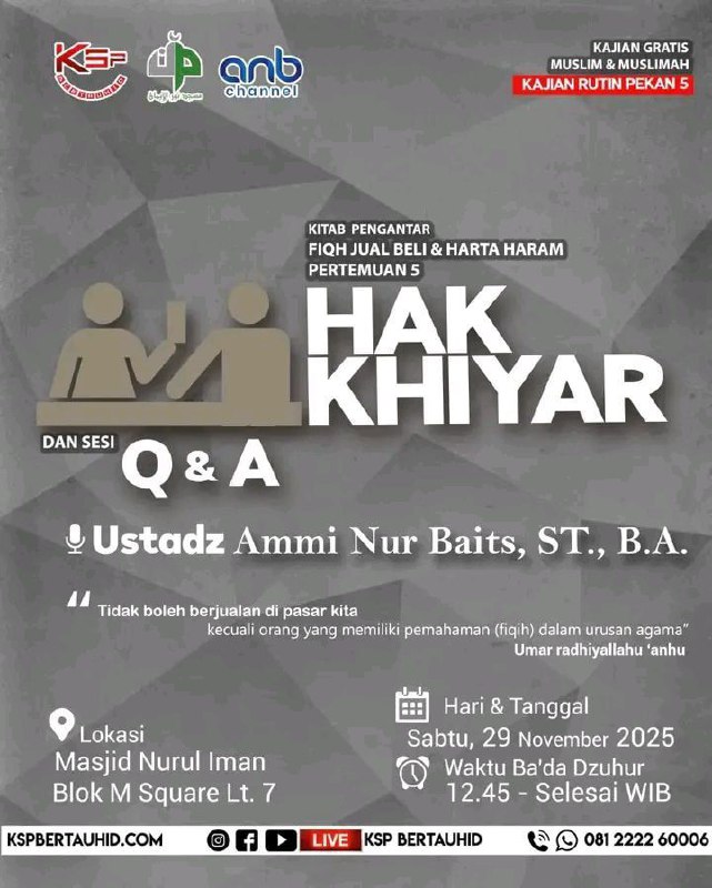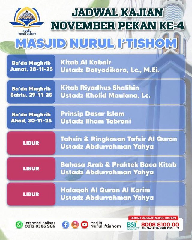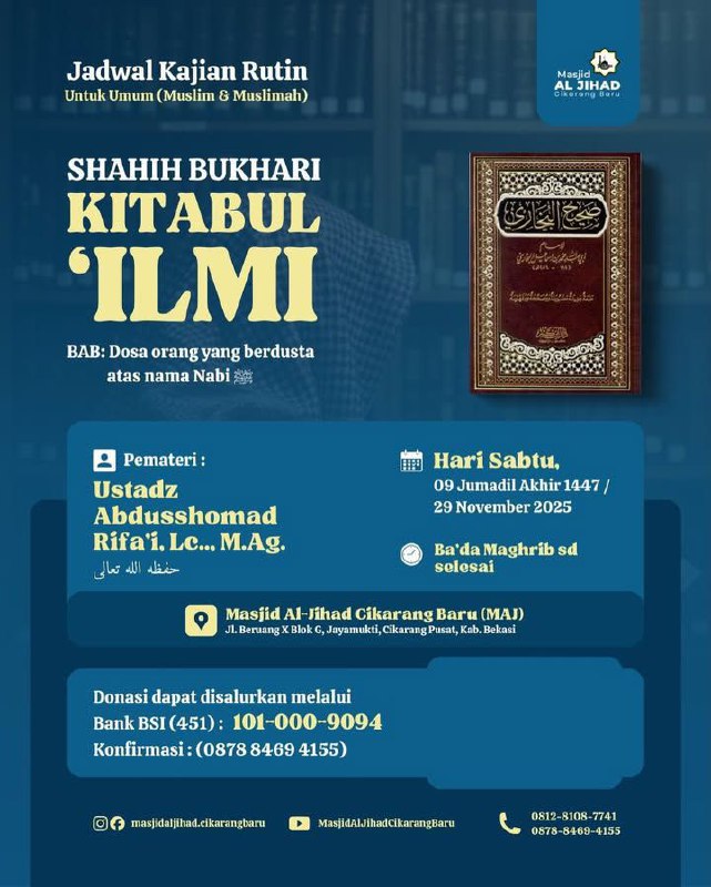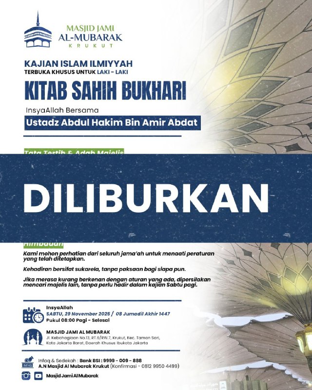 insyaAllah besok sabtu pekan ke 4 akan diadakan kembali kajian rutin bulanan bersama Ust Abdullah Taslim MA _hafidzahullah_