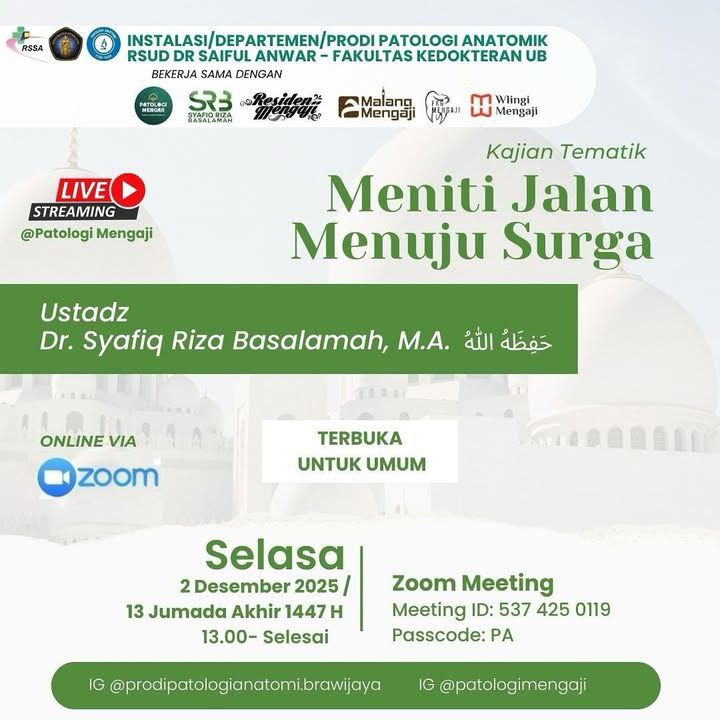 #KajianRutin #KajianIslam #PatologiAnatomi #FKUB #RSSA #KajianSunnah #IlmuSyari #MenuntutIlmu #KajianOnline #ZoomKajian #KajianIslamOnline