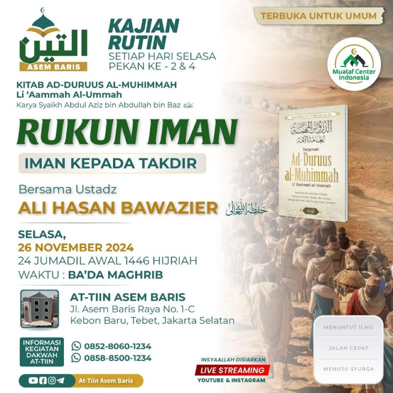 Hadirilah Kajian Rutin Setiap Hari Selasa Pekan 2&4 ditayangkan secara OFFLINE dan LIVE STREAMING via YOUTUBE Insyaa Allah bersama :