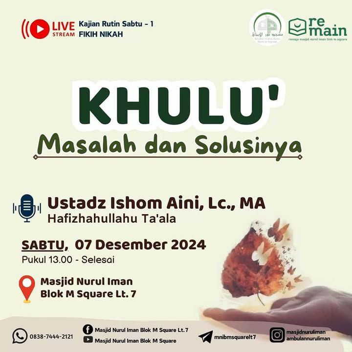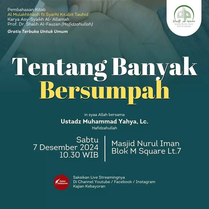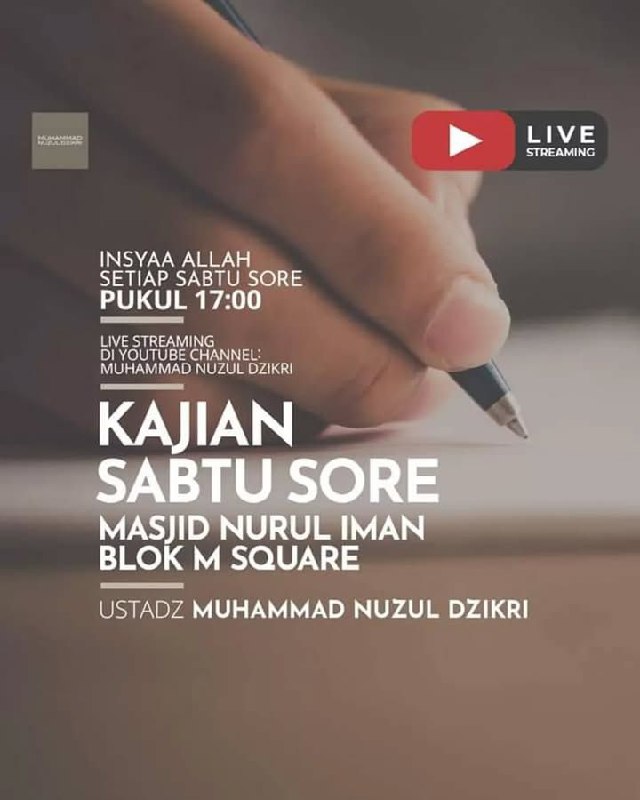 ?: Kajian ini juga dapat disaksikan live streaming di Facebook dan YouTube Masjid Nurul Iman Blok M Square