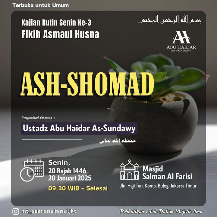 Dengan mengharap ridho Allah 'azza wa jalla, hadirilah kajian kitab rutin terbuka untuk umum.. Insyaallah :
