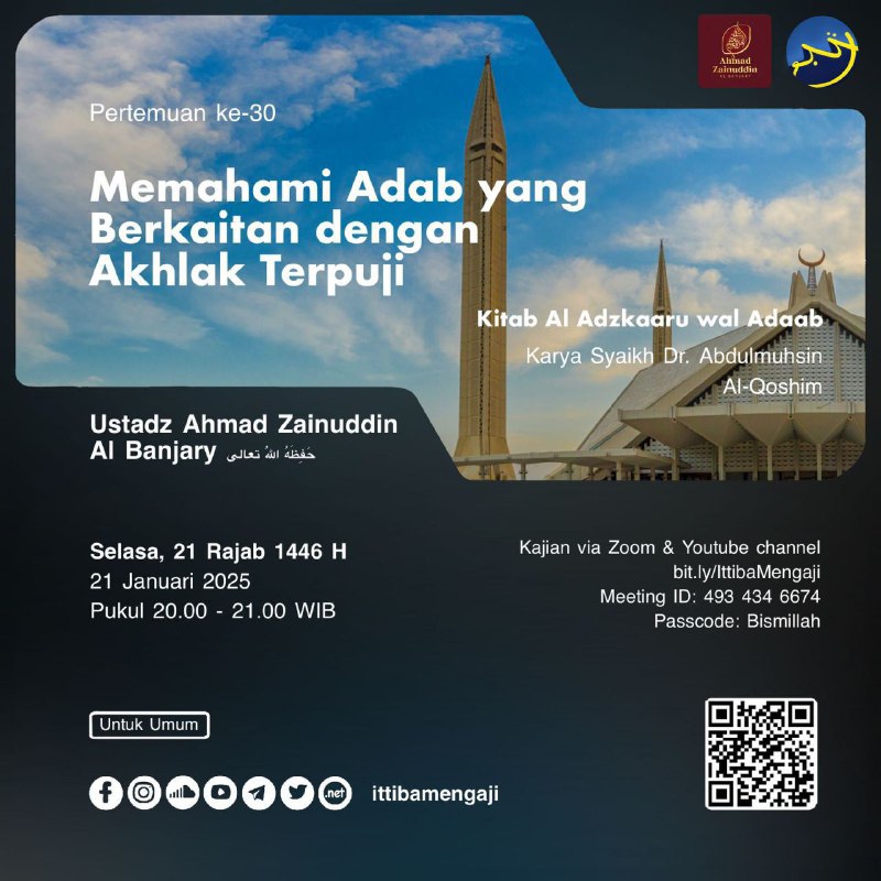 ▶️ Kajian akan diadakan via Zoom dan Youtube channel *IttibaMengaji* _(scan QR code diposter)._