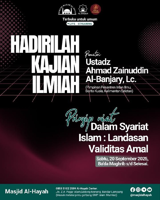 📡 Update Seputar Kegiatan Masjid Al-Hayah di Link berikut, untuk mengikuti beberapa akun resmi Masjid Al-Hayah :
