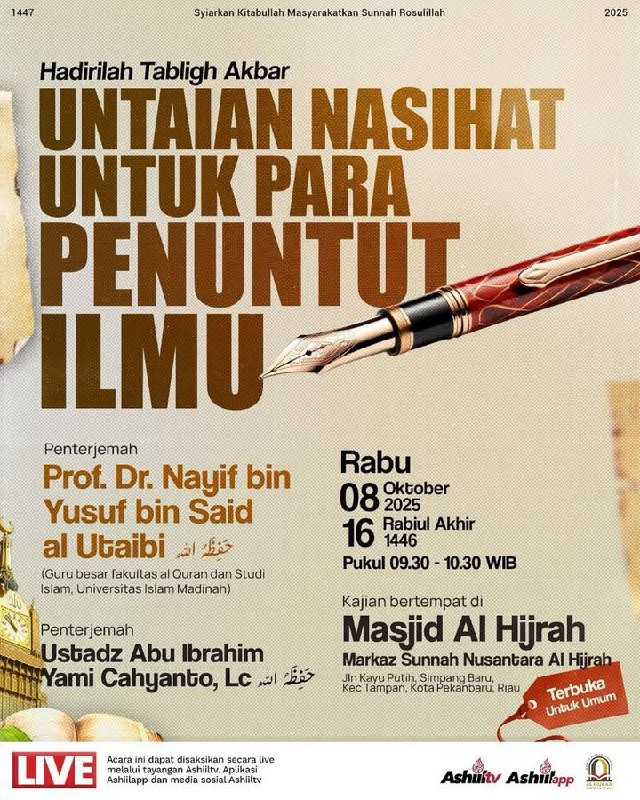 🗓️ Rabu, 8 Oktober 2025 / 16 Rabiul Akhir 1446 H