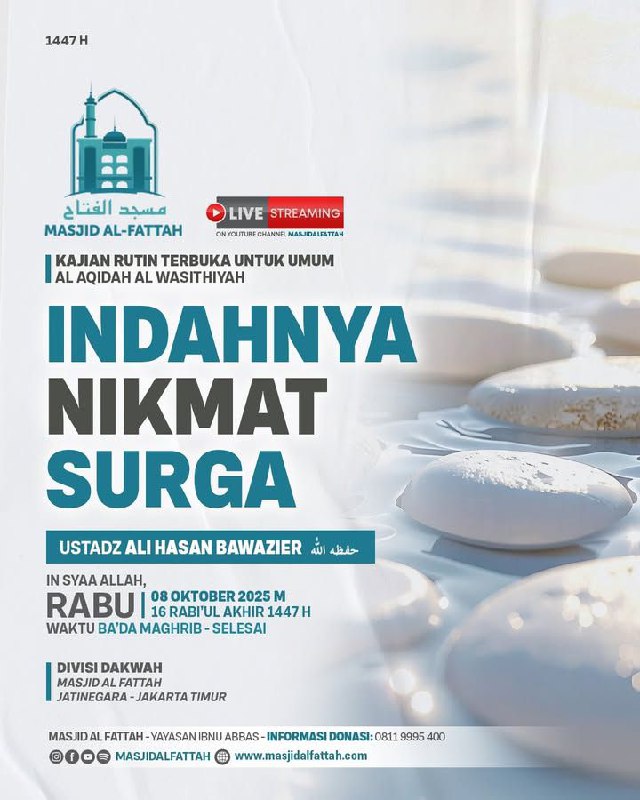 In sya ALLAH ditayangkan langsung di Channel YouTube Masjid Al-Fattah