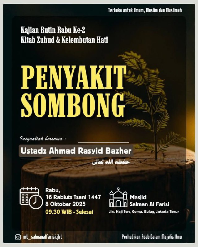 Dengan mengharap ridho Allah 'azza wa jalla, hadirilah kajian rutin tiap Rabu kedua, terbuka untuk umum.. Insyaallah :