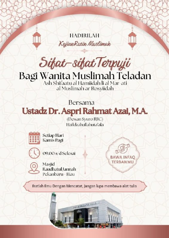 InsyaaAllahuta'ala akan dilaksanakan kajian khusus untuk wanita Muslimah pada: