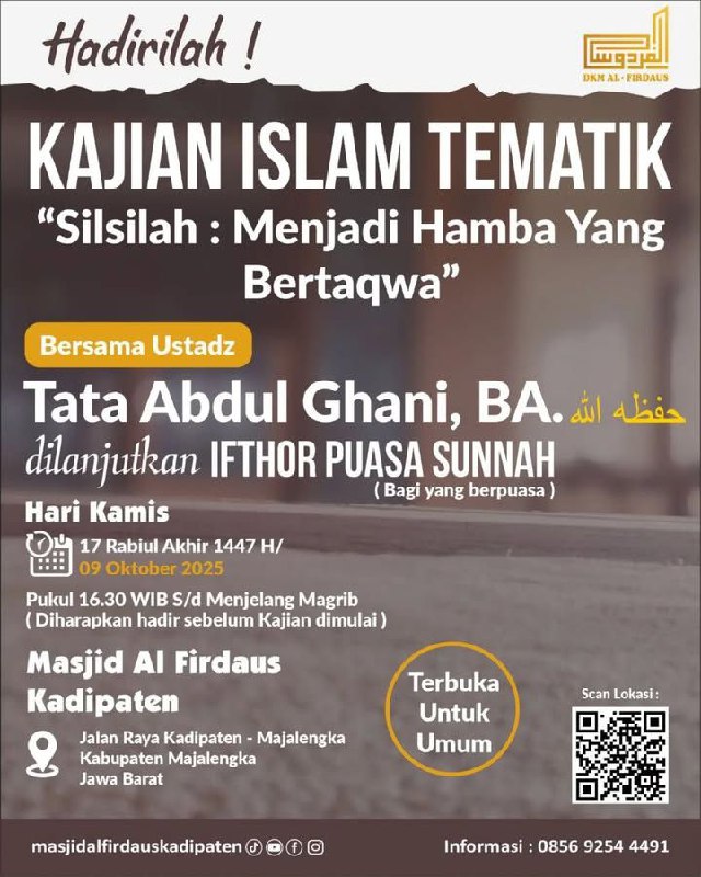 #KajianIslam #MasjidAlFirdaus #MajalengkaMengaji #NgajiYuk #IfthorPuasaSunnah #MenjadiHambaBertaqwa #MajelisIlmu #KajianTematik