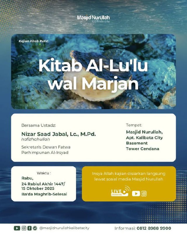 π‘ Kajian Insya Allah disiarkan langsung melalui Channel YouTube Masjid Nurullah Kalibata City