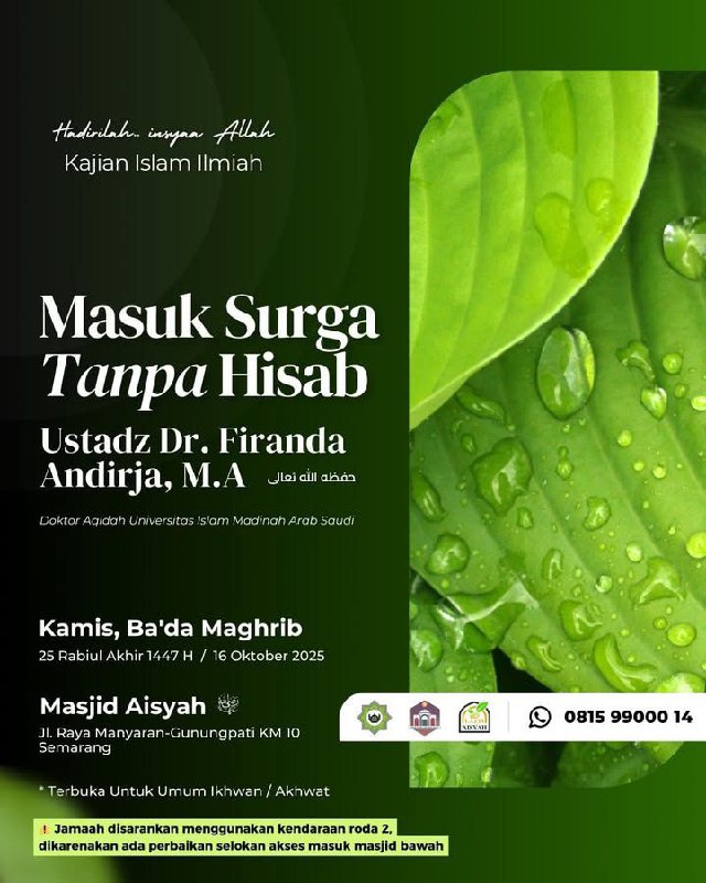 βœ… Jamaah disarankan menggunakan kendaraan roda 2, dikarenakan ada perbaikan selokan akses masuk masjid bawah ⚠️