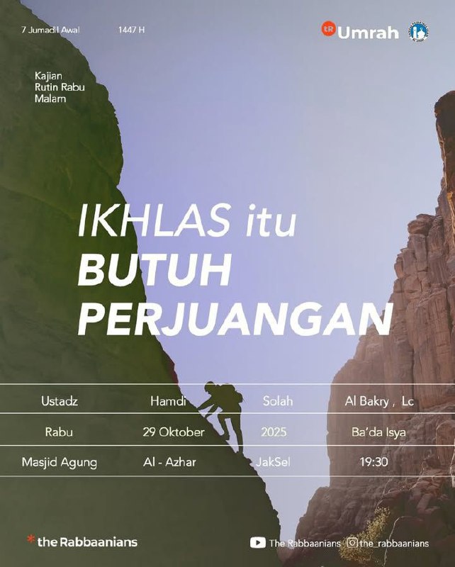 Di Kajian The Rabbaanians, Rabu 29 Oktober 2025 pukul 19.45 WIB bersama Ustadz Hamdi Solah Al-Bakry, Lc @hamdialbakry