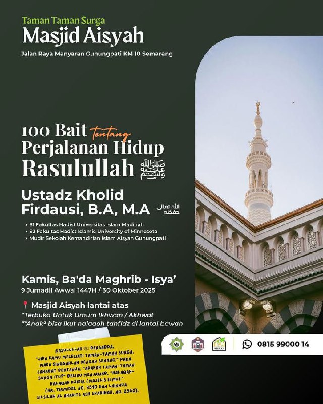 Kamis Malam, 9 Jumadil Awwal 1447H / 30 Oktober 2025