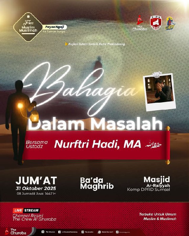 Temukan rahasianya di Kajian Islam Ilmiyah dengan tema “Bahagia Dalam Masalah.”Karena mungkin, kebahagiaan yang kamu cari