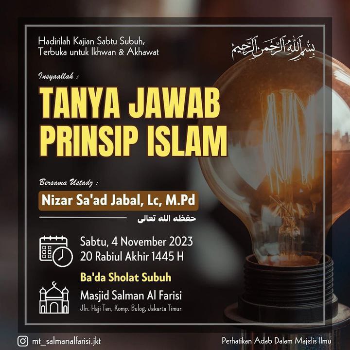 Dengan mengharap ridho Allah 'azza wa jalla, hadirilah kajian rutin tiap *Sabtu Subuh* Insyaallah :