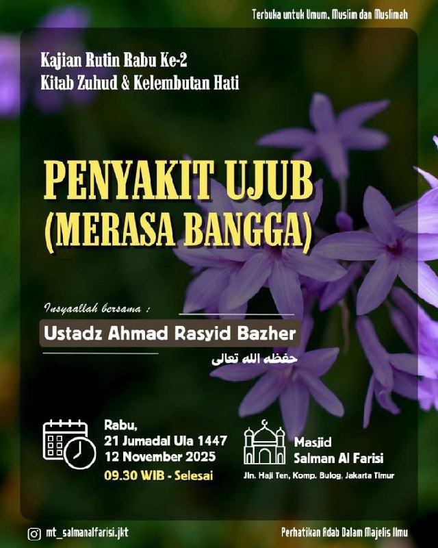 Dengan mengharap ridho Allah 'azza wa jalla, hadirilah kajian rutin tiap Rabu kedua, terbuka untuk umum.. Insyaallah :