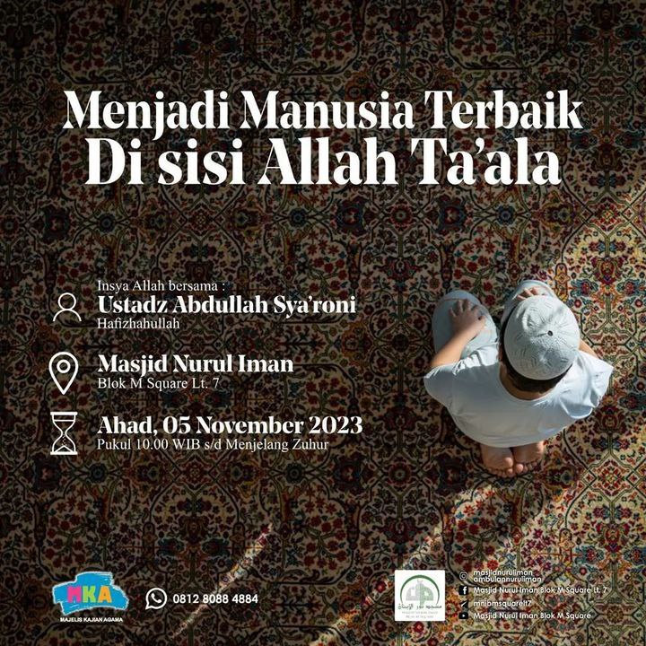 ?: Kajian ini juga dapat disaksikan live streaming di Facebook dan YouTube Masjid Nurul Iman Blok M Square