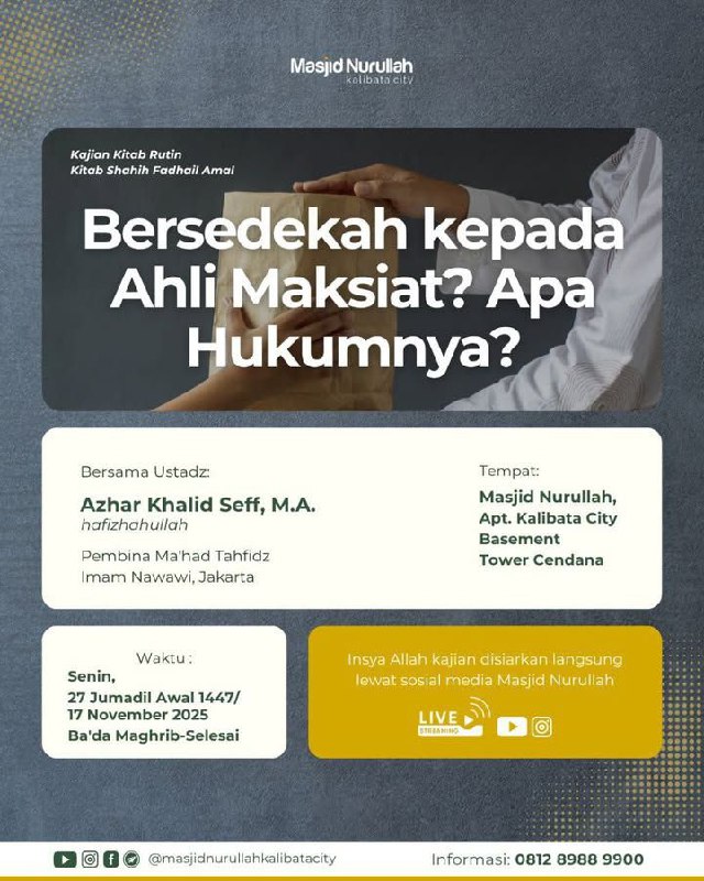 π‘ Kajian Insya Allah Disiarkan Live via Channel YouTube Masjid Nurullah Kalibata City