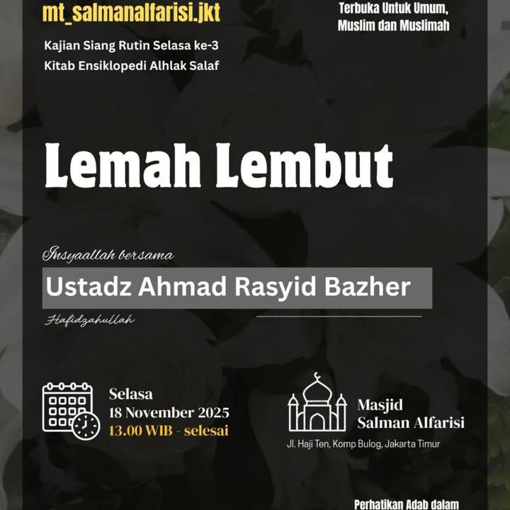 Dengan mengharap ridho Allah 'azza wa jalla, hadirilah kajian rutin terbuka untuk umum. Insyaallah :