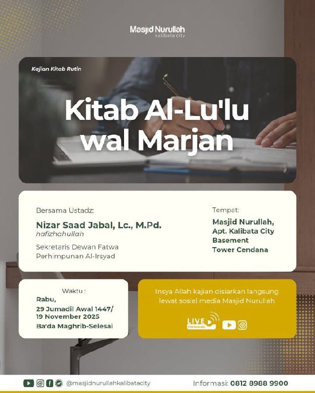 π‘ Kajian Insya Allah Disiarkan Live via Channel YouTube Masjid Nurullah Kalibata City