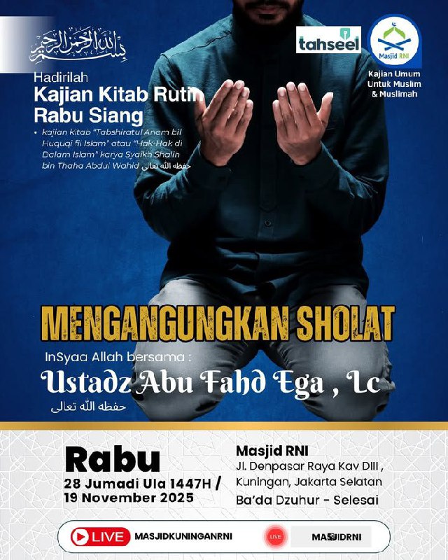 Dengan mengharap ridho Allah โ€˜azza wa jalla, hadirilah Kajian Kitab Tabshiratul Anam bil Huquqi fil Islamโ€ atau โ€œHak-Hak di Dalam Islamโ€ karya Syaikh Shalih bin Thaha Abdul Wahid ุญูุธู‡ ุงู„ู„ู‡ ุชุนุงู„ู‰ rutin terbuka untuk umum.. InSyaa Allah :