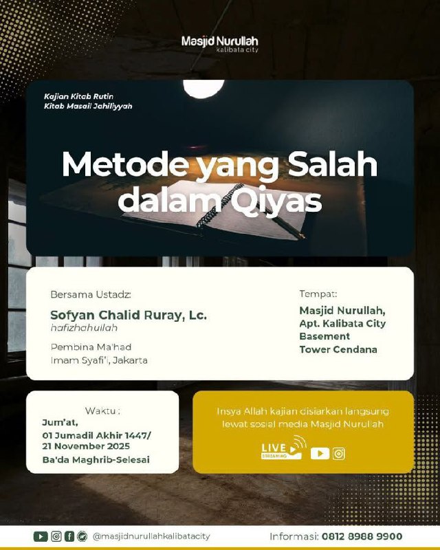 πŸ“‘ Kajian Insya Allah Disiarkan Live via Channel YouTube Masjid Nurullah Kalibata City
