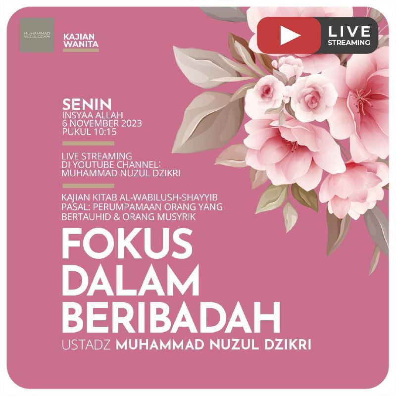 Ikuti Kajian Serial Wabilush Shayyib via channel YouTube https://www.youtube.com/c/MuhammadNuzulDzikri/ insyaa Allah bersama: