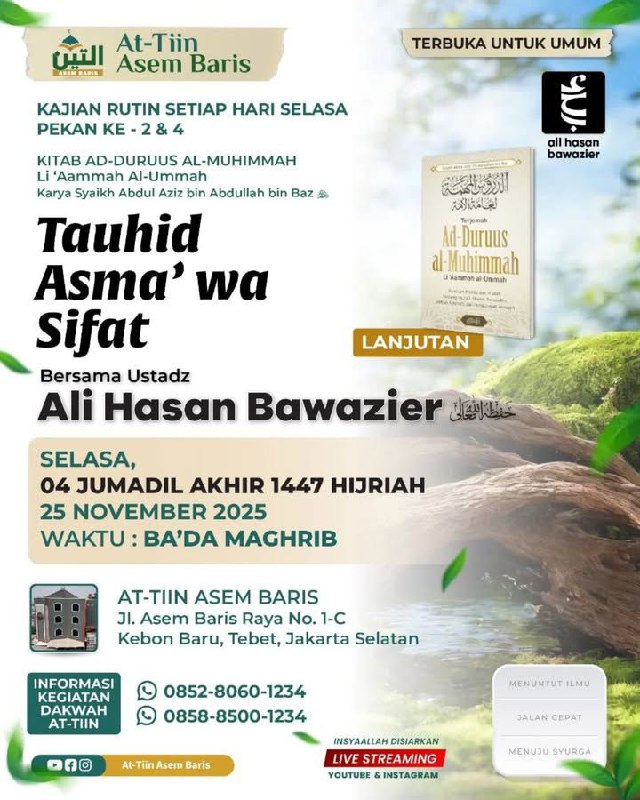 Ayo ikut serta, baik hadir langsung maupun online. Jangan lewatkan kesempatan menambah ilmu, jalan cepat menuju surga. 🌿