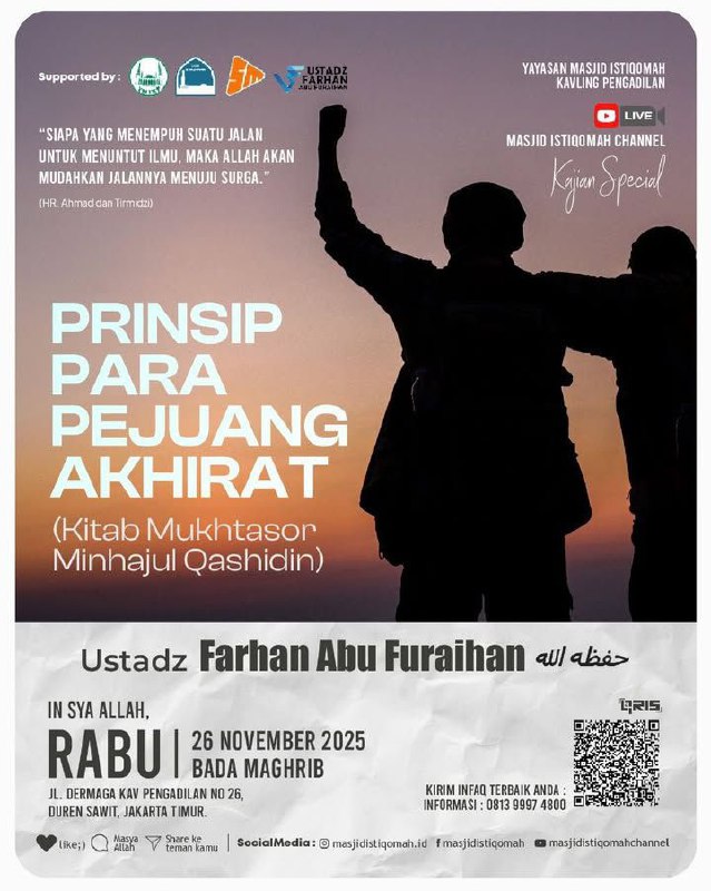Hadirilah Kajian Special Rabu Malam Bada Maghrib di Masjid Istiqomah Kav Pengadilan Jakarta Timur.