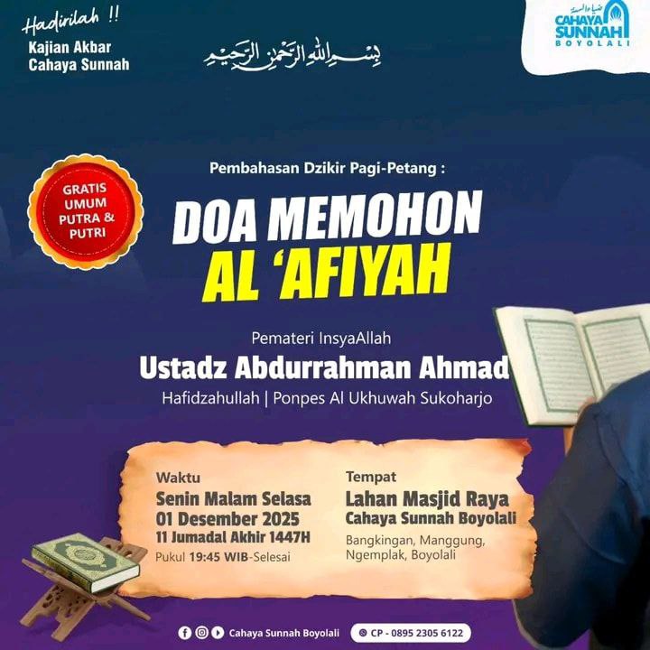 InsyaAllah kajian akbar Cahaya Sunnah besuk Senin di Lahan Masjid Raya Cahaya Sunnah Boyolali.. Semoga Allah mudahkan