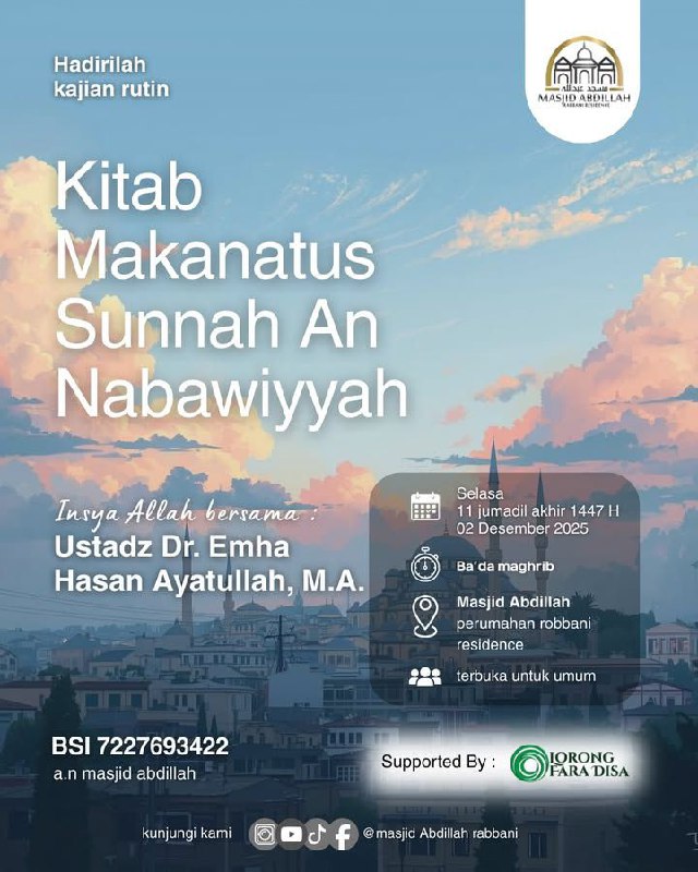 🌱Hadirilah Kajian Rutin Masjid Abdillah, Insya Allah bersama :