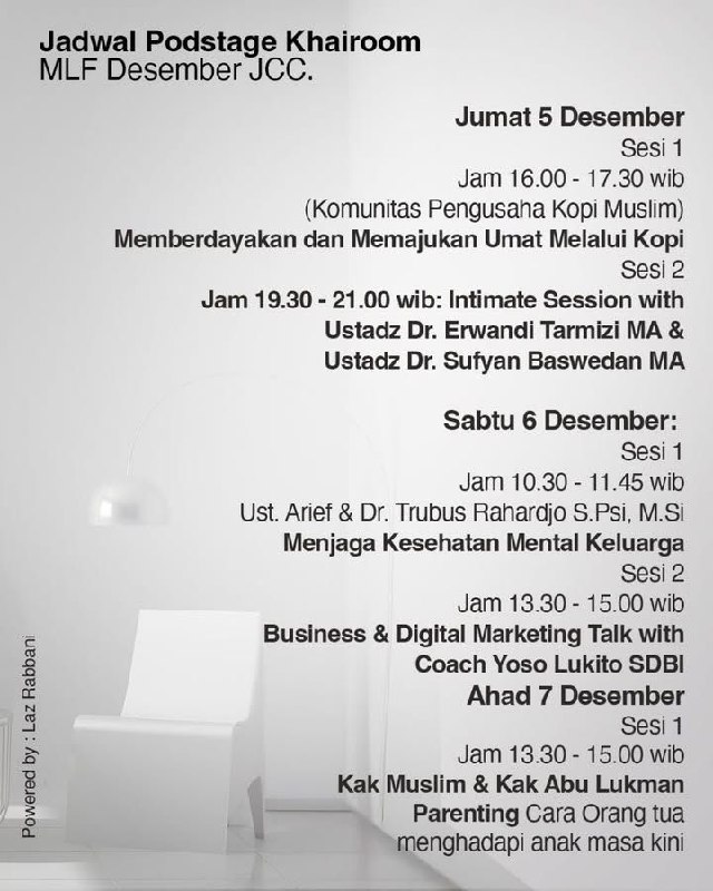 Anda yang mempunyai permasalahan muamalah, dalam bisnis, dalam kerjaan, silahkan hadir di stage Khairoom, event @muslimlifefair.id , insyallah