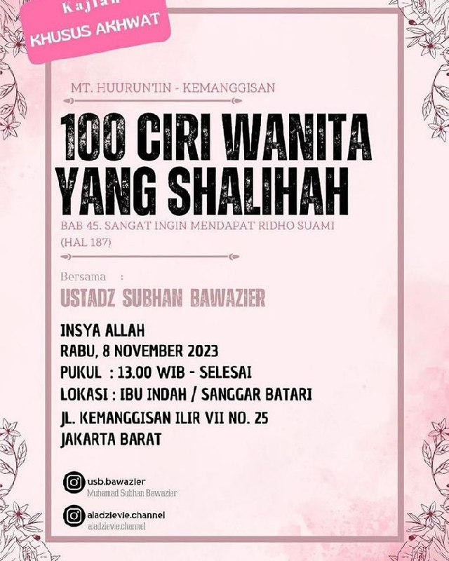 Kajian Islam Khusus akhwat - MT Huruun in Kemanggisan
