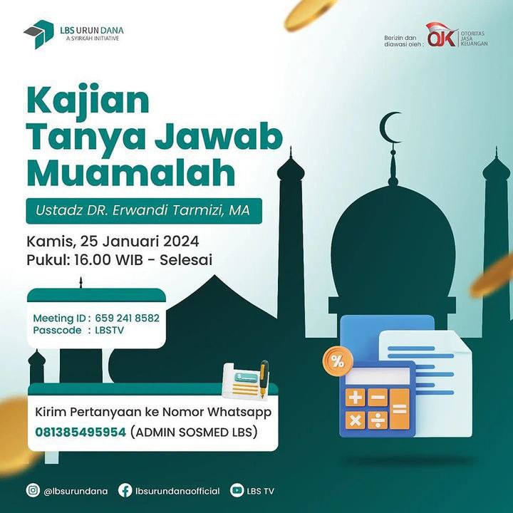 Yuukk, gabung di Kajian Tanya Jawab Muamalah bersama Ustadz DR. Erwandi Tarmizi, MA (Founder of LBS Urun Dana)