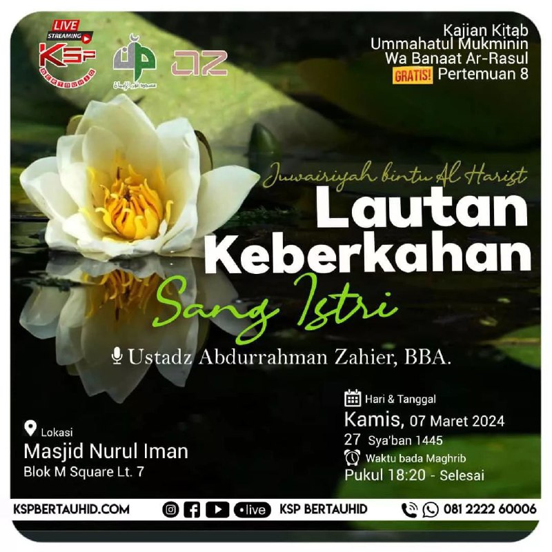 ?: Kajian ini juga dapat disaksikan live streaming di Facebook dan YouTube Masjid Nurul Iman Blok M Square