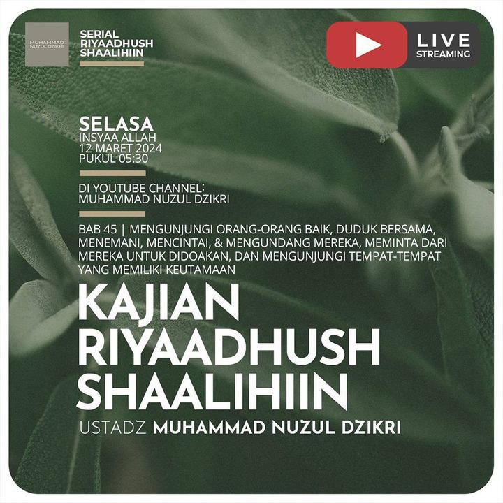 Ikuti Kajian Serial Riyaadhush Shaalihiin, insya Allah bersama: