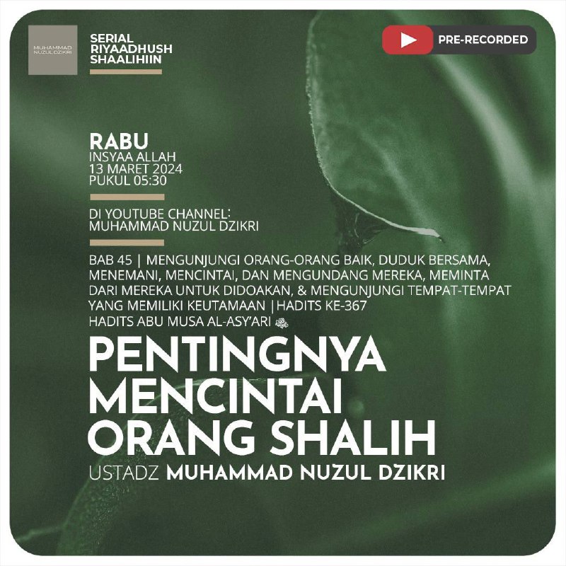 Ikuti Kajian Serial Riyaadhush Shaalihiin, insya Allah bersama: