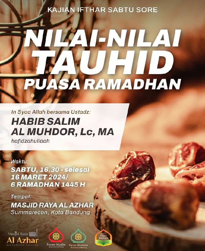 *16.30 - 17.30:* Kajian Menjelang Ifthar Bersama Habib Salim Al-Muhdor, Lc., MA., Dr.