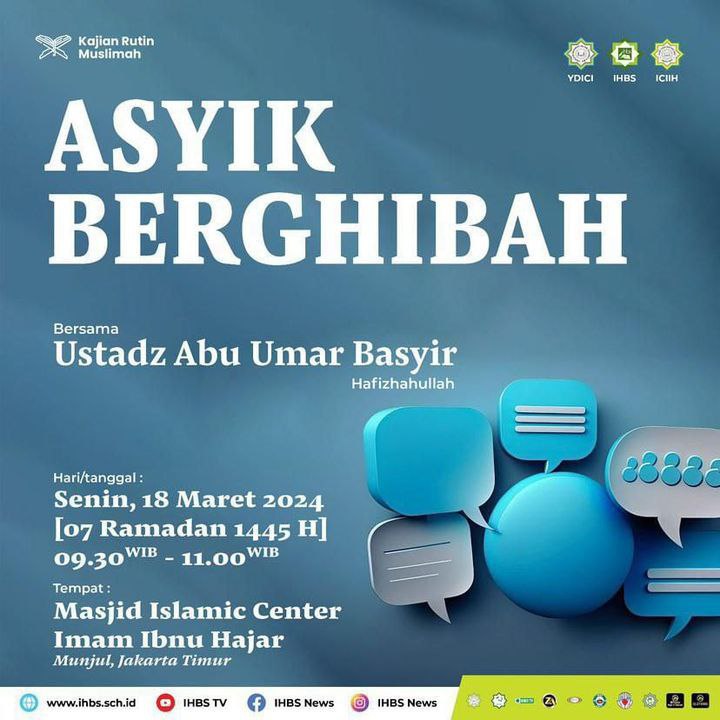 InsyaAllah *Islamic Center Imam Ibnu Hajar* akan mengadakan Kajian Ilmiyah Terbuka (khusus akhwat) dengan Tema :