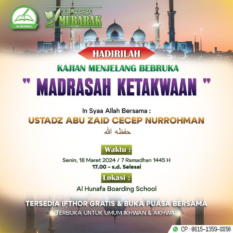 ? Waktu : Senin, 18 Maret 2024 / 7 Ramadhan 1445 H 17.00 s.d. Selesai
